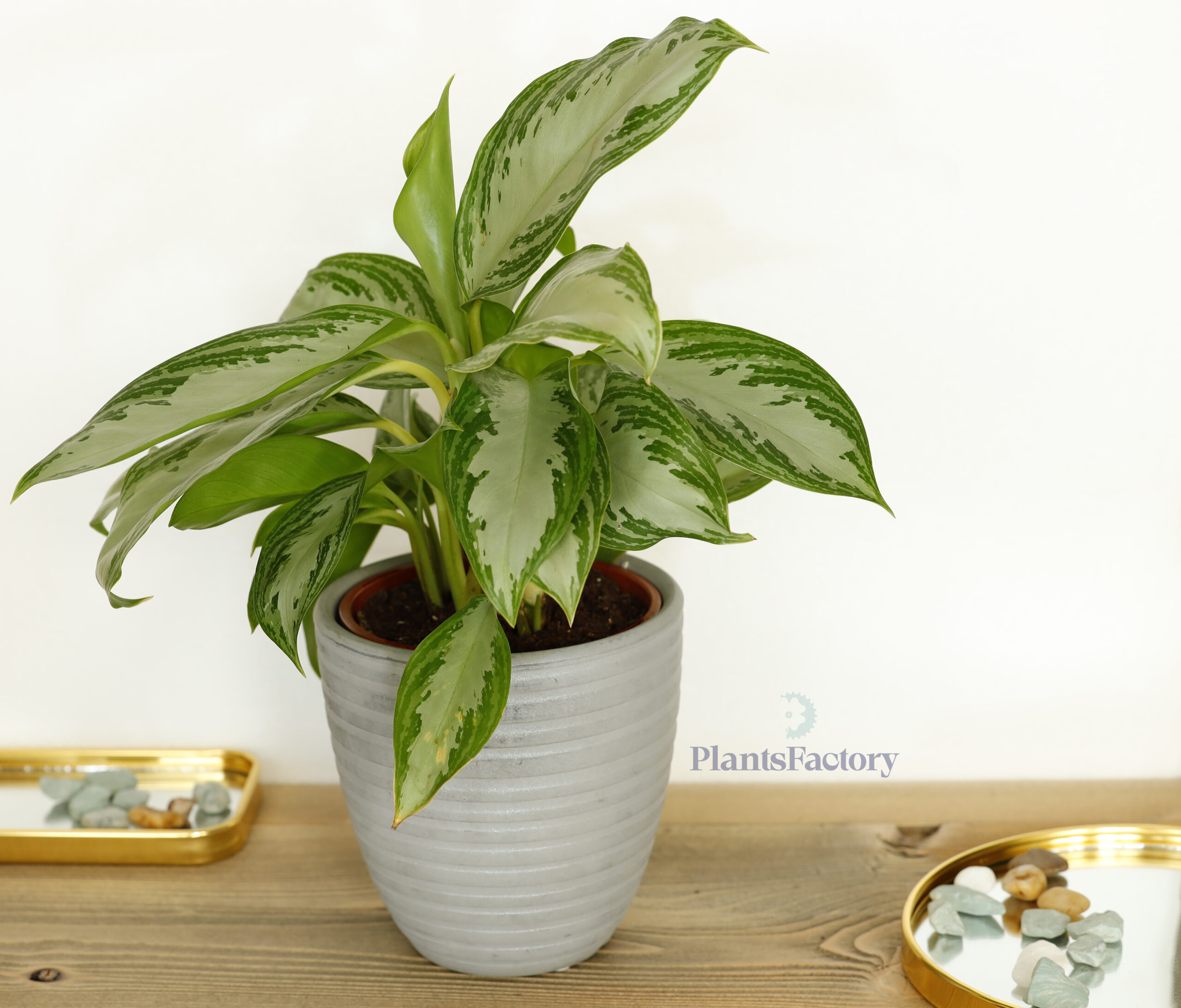 Aglaonema Silver Bay is a popular indoor plant known for its striking foliage, with a height of 40 cm. The plant features large, glossy leaves with a silver-green hue and dark green edges, adding a touch of elegance to any space.