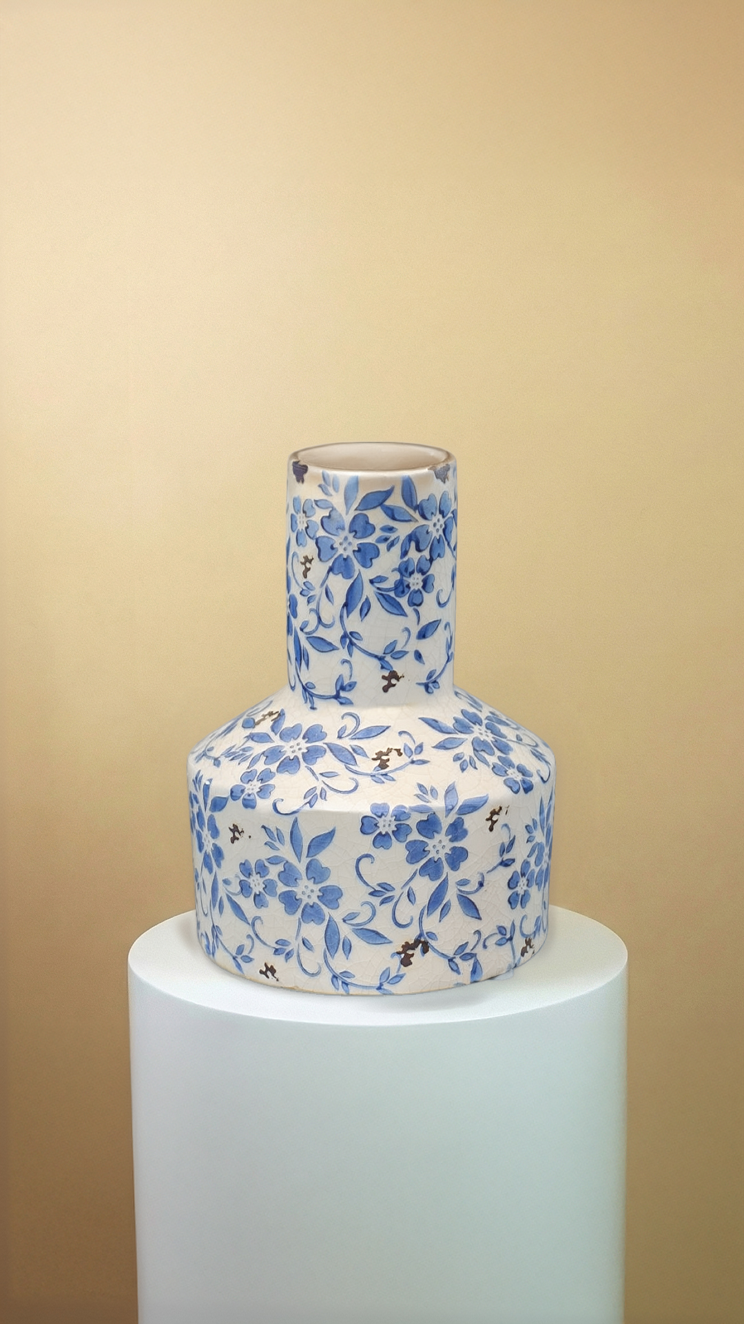 A charming ceramic vase featuring delicate blue floral detailing. Its balanced form and timeless pattern add elegance and character to both contemporary and classic interiors.