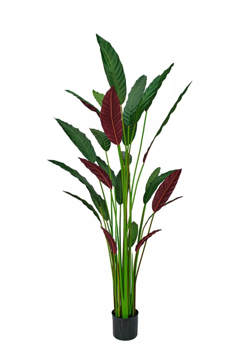 Add a vibrant, exotic touch to your space with this stunning 160cm Artificial Calathea Rufibarba. This eye-catching bush demands attention with its unique shape and color, featuring narrow dark green leaves that reveal a striking burgundy on their reverse side. The foliage looks exceptionally impressive thanks to its natural wavy texture. Crafted from a high-quality water-repellent textile enhanced with cellulose, the removable and interchangeable leaves contain flexible wire, allowing you to easily swap their placement and shape the plant to your exact preference.