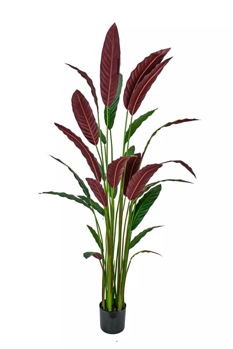 Add a vibrant, exotic touch to your space with this magnificent 180cm Artificial Calathea Rufibarba. This eye-catching, tall bush demands attention with its unique shape and color, featuring narrow dark green leaves that reveal a striking burgundy on their reverse side. The foliage looks exceptionally impressive thanks to its natural wavy texture. Crafted from a high-quality water-repellent textile enhanced with cellulose, the removable and interchangeable leaves contain flexible wire, allowing you to easily swap their placement and shape the plant to your exact preference.