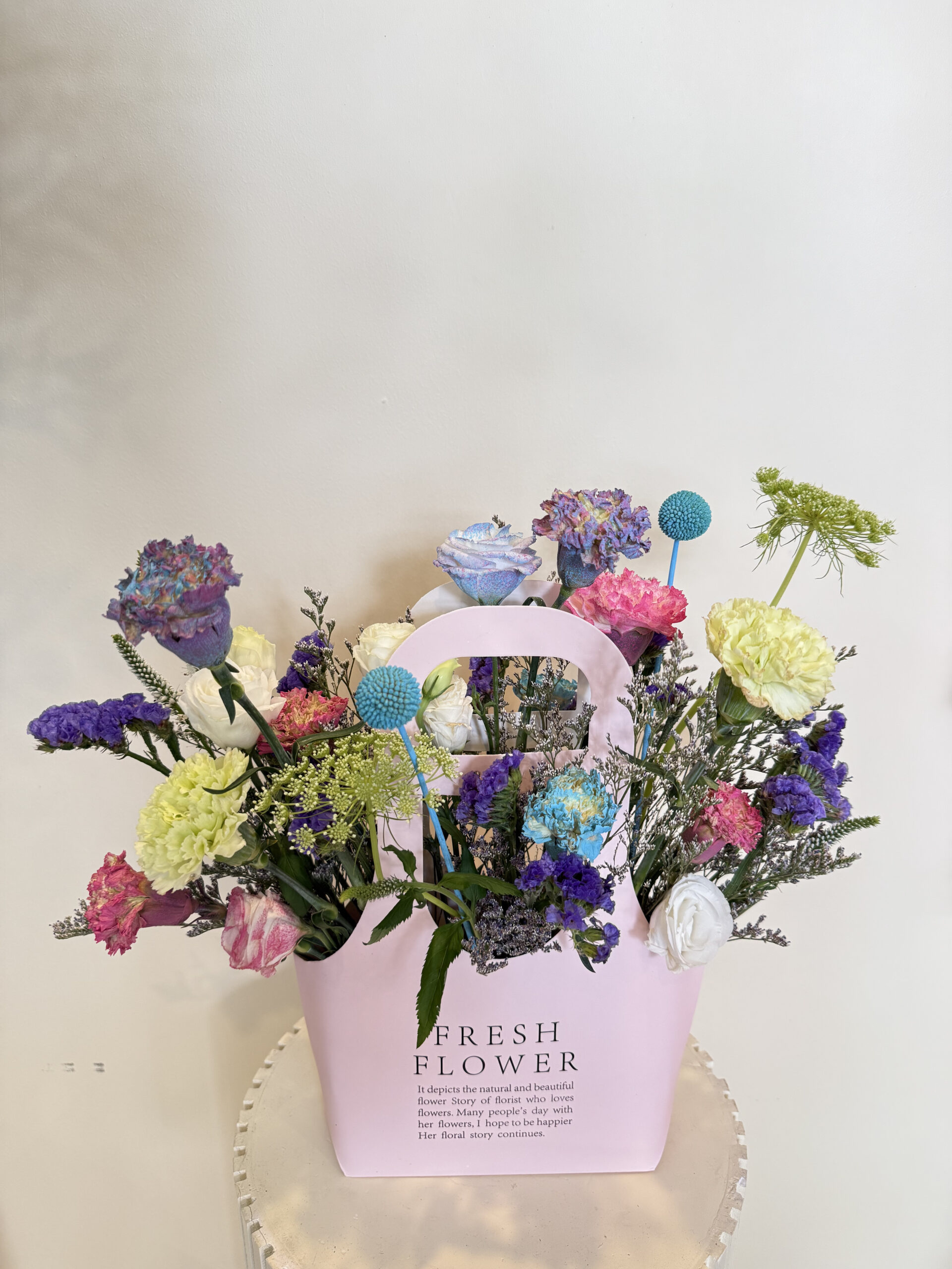 A dreamy mix of pastel blooms arranged in a chic pink Petal Tote. Soft, artistic, and full of charm, perfect for sweet celebrations and thoughtful gifting.