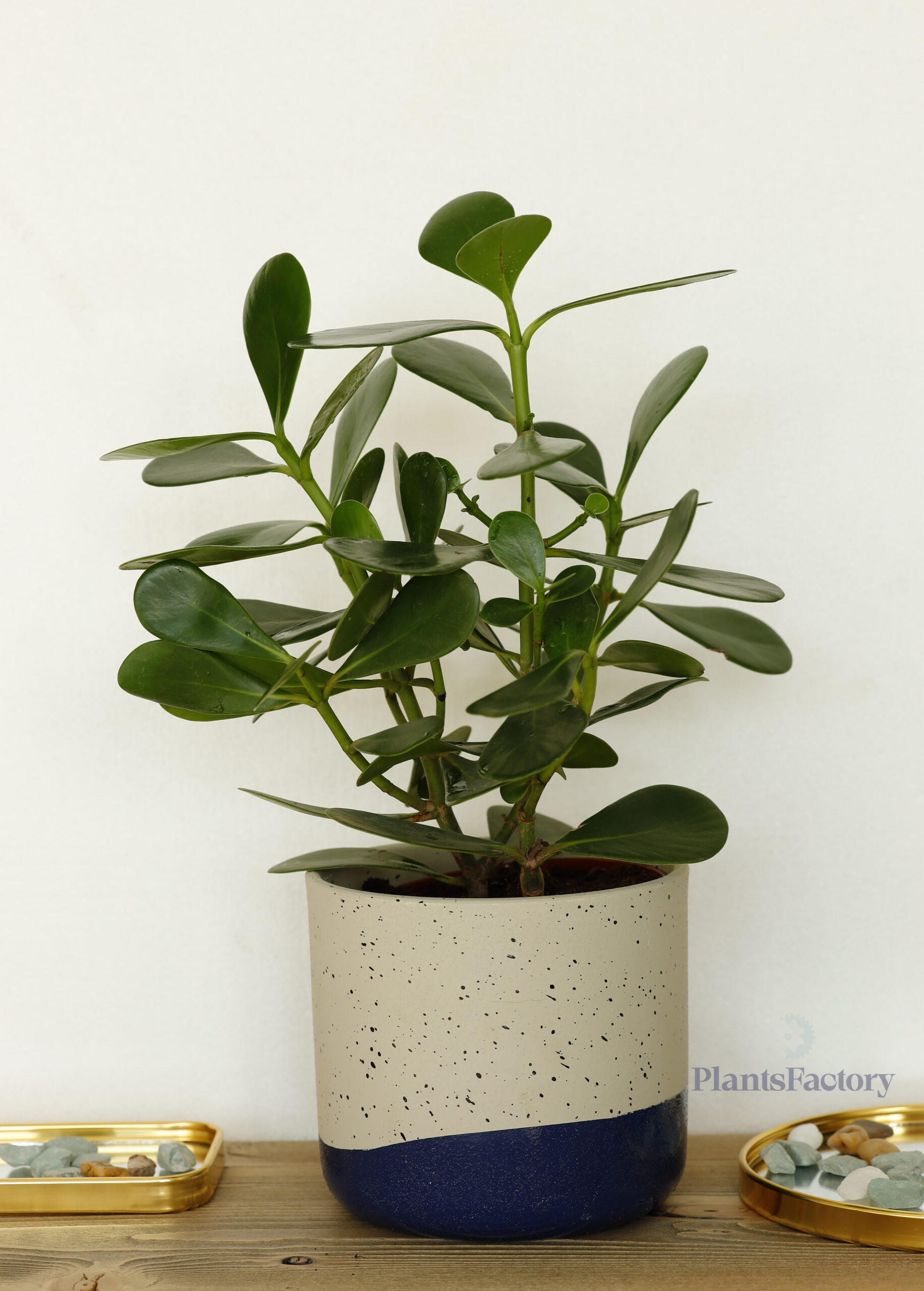 Clusia Rosea Princess, also known as the Autograph Tree or Butterfly Clusia, is a striking and elegant indoor plant with glossy, dark green leaves that have a smooth, leathery texture. The leaves often feature a distinctive, attractive sheen, adding a touch of sophistication to any space. This variety, known for its compact and bushy growth, stands at approximately 38 cm tall and comes in a 14 cm diameter pot, making it an ideal choice for smaller spaces or as a table centerpiece.