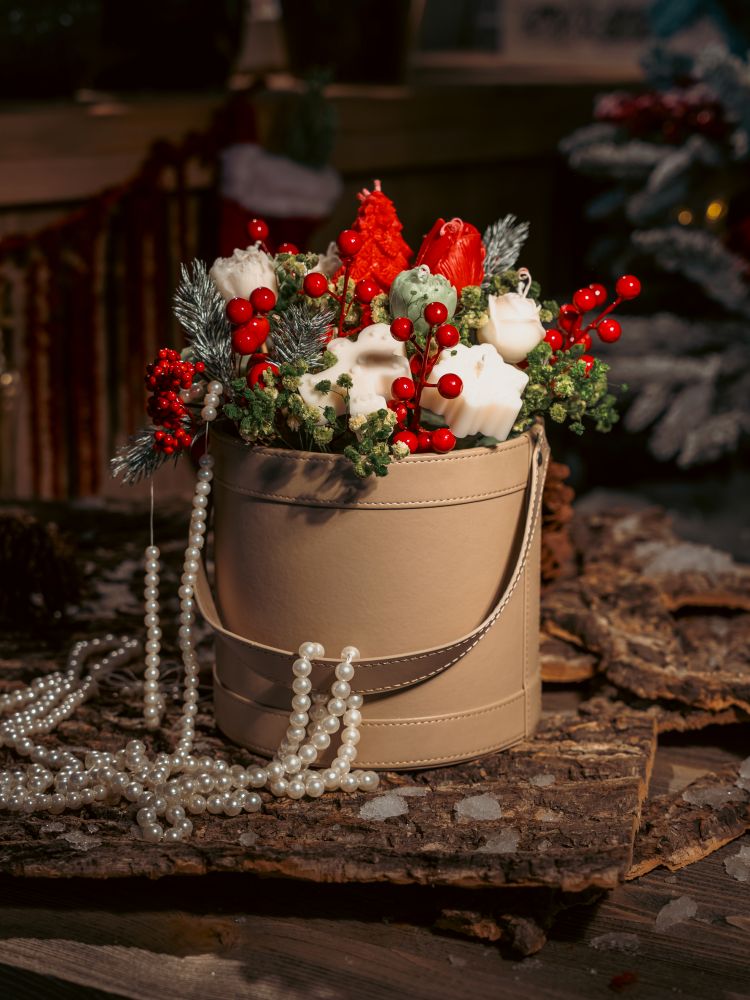 Bring the magic of a European Christmas market to your home in Abu Dhabi or Dubai with our Snowberry Wishes Hatbox. This elegant beige box is filled with festive greenery, winter berries and handcrafted candles shaped like snowflakes and treats – the perfect centrepiece for your Christmas table or a premium gift for someone special in the UAE.