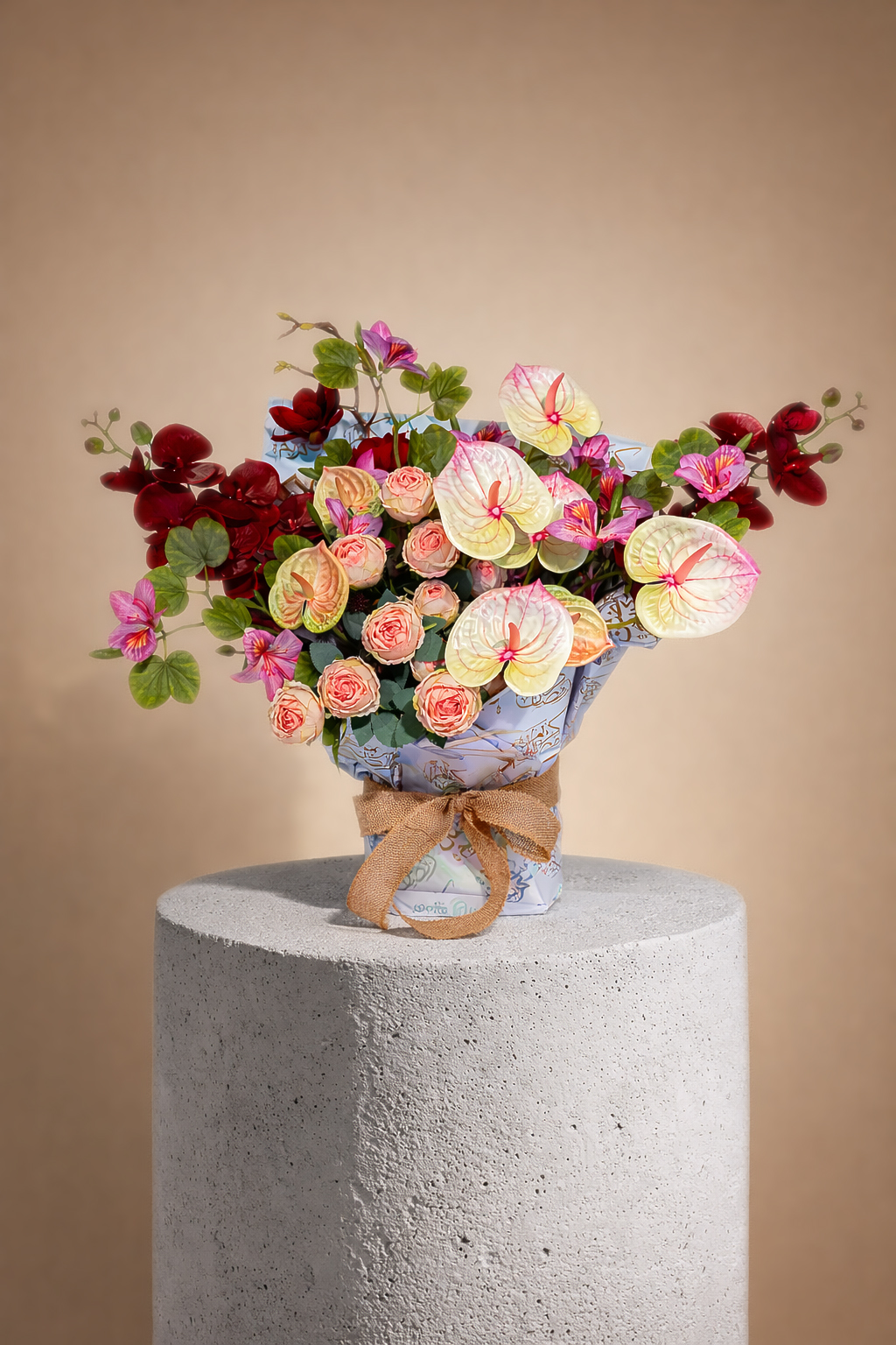 - Artificial cream and blush anthurium flowers