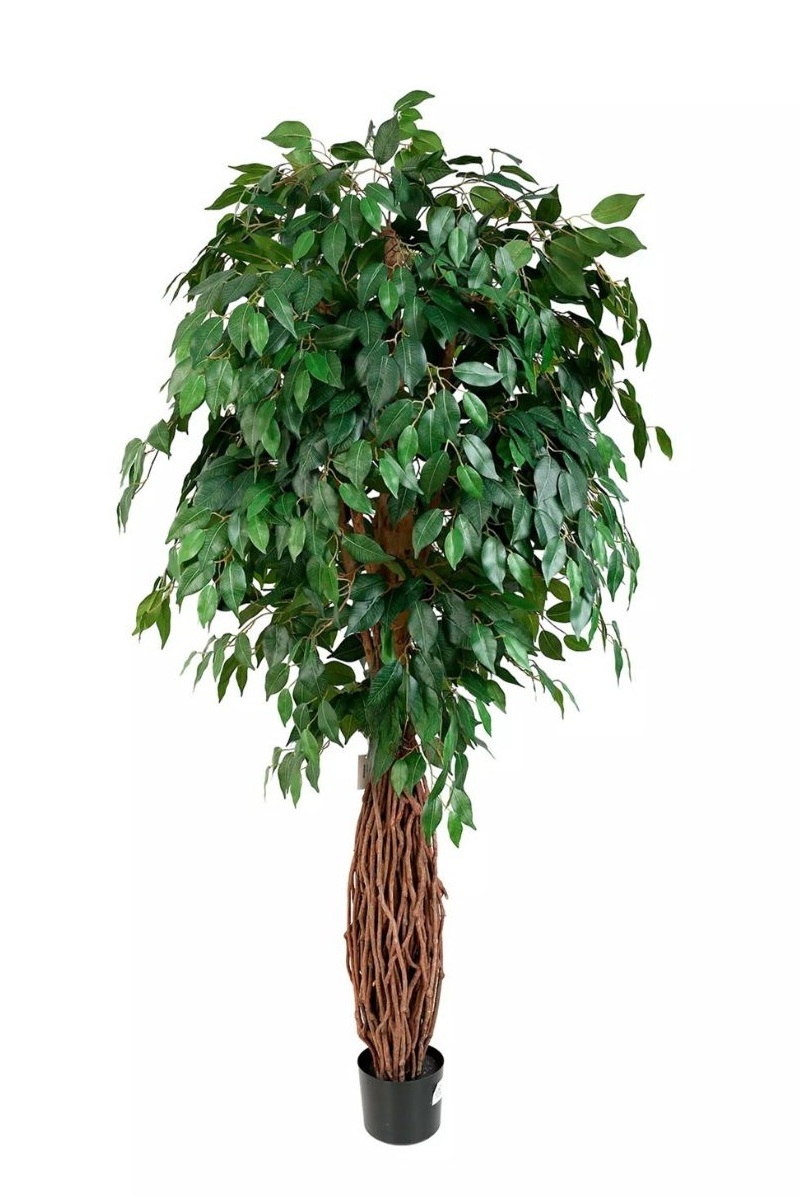 Add a touch of natural elegance to your space with this stunning Artificial Ficus Benjamina Liana. The lifelike leaves are crafted from high-quality textile and feature a detailed printed vein pattern. Each branch contains a flexible metal wire, allowing you to easily shape the foliage for a lush and airy appearance. Its standout feature is a beautifully natural trunk, consisting of several stems elegantly intertwined like lianas for an authentic botanical look.