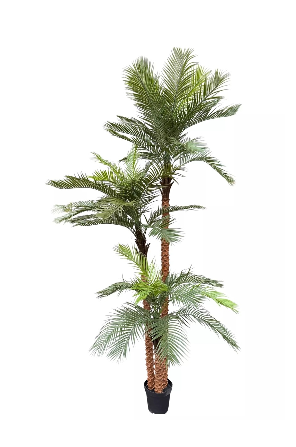 Coconut palm tree 300 cm high is a spectacular interior tree that creates a tropical atmosphere and brings a sense of comfort and freshness to the space. Large curved leaves of a rich green color form a lush crown, and a slender trunk with a textured surface makes the plant as close to natural as possible. The impressive height allows you to use the palm tree in spacious rooms, where it will become the main accent and visually enliven the interior, giving the space an exotic charm and a relaxing atmosphere.