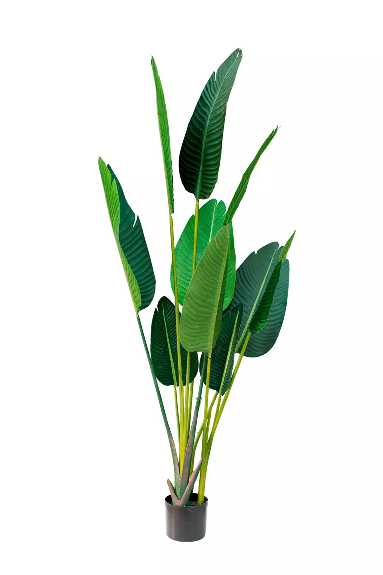 Bring a lush and showy tropical aesthetic to your space with this stunning Artificial Strelitzia Nicolai. Crafted from high-quality textile, its large, textured oval leaves feature realistic slightly torn edges that perfectly capture the wild beauty of a natural plant. The bush boasts many upright stalks that brilliantly imitate a living plant’s growth cycle, featuring thinner, lighter green stems for newer growth and larger, darker green ones representing maturity. With removable leaves reinforced by internal metal wires for customizable styling, this zero-maintenance piece comes pre-arranged in a convenient starter pot to effortlessly elevate your interior decor.