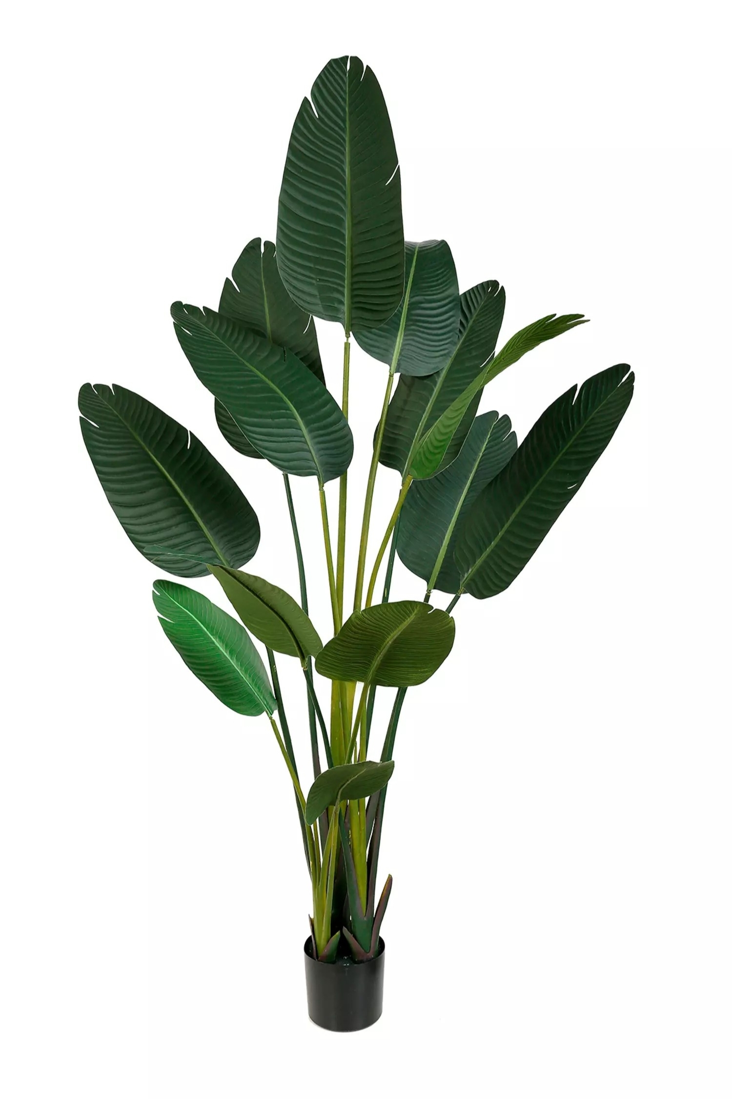 Bring a lush and showy tropical aesthetic to your space with this stunning Artificial Strelitzia Nicolai. Crafted from high-quality textile, its large, textured oval leaves feature realistic slightly torn edges that perfectly capture the wild beauty of a natural plant. The bush boasts many upright stalks that brilliantly imitate a living plant’s growth cycle, featuring thinner, lighter green stems for newer growth and larger, darker green ones representing maturity. With removable leaves reinforced by internal metal wires for customizable styling, this zero-maintenance piece comes pre-arranged in a convenient starter pot to effortlessly elevate your interior decor.
